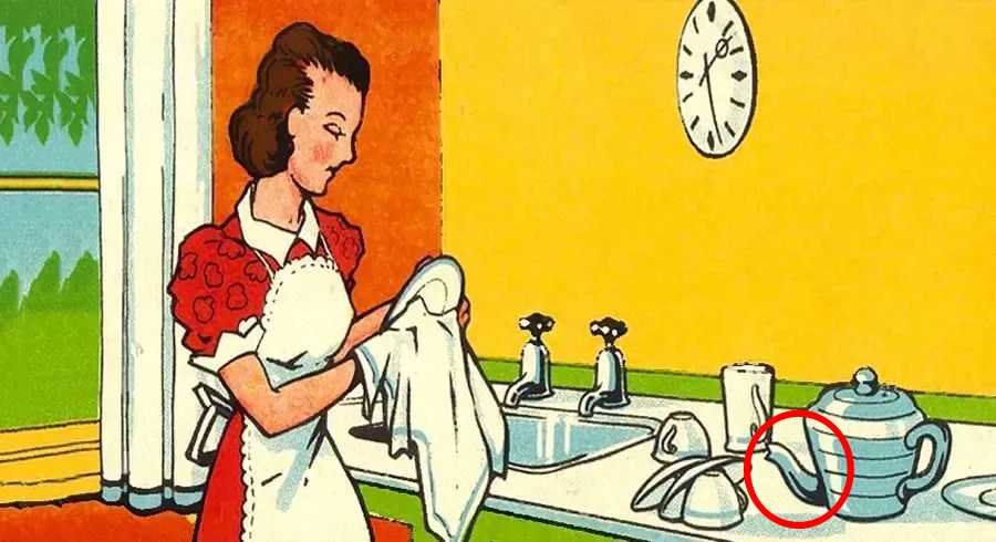 Na obrázku vidíme dívku, která myje nádobí. Zdálo by se, že na tom není nic neobvyklého. Ale něco na obrázku není v pořádku.