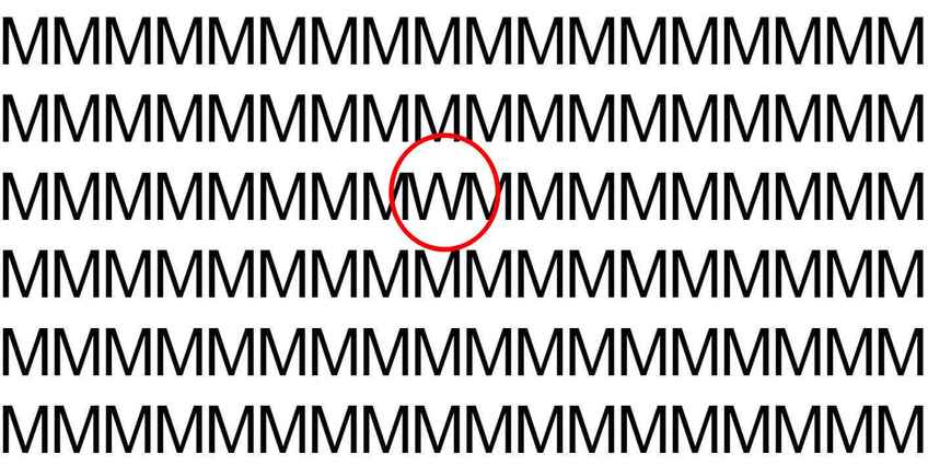 Vyřešte fascinující optický klam – mezi písmeny M, kterých je na obrázku mnoho, musíte rychle najít W, které je skryté vašemu zraku.