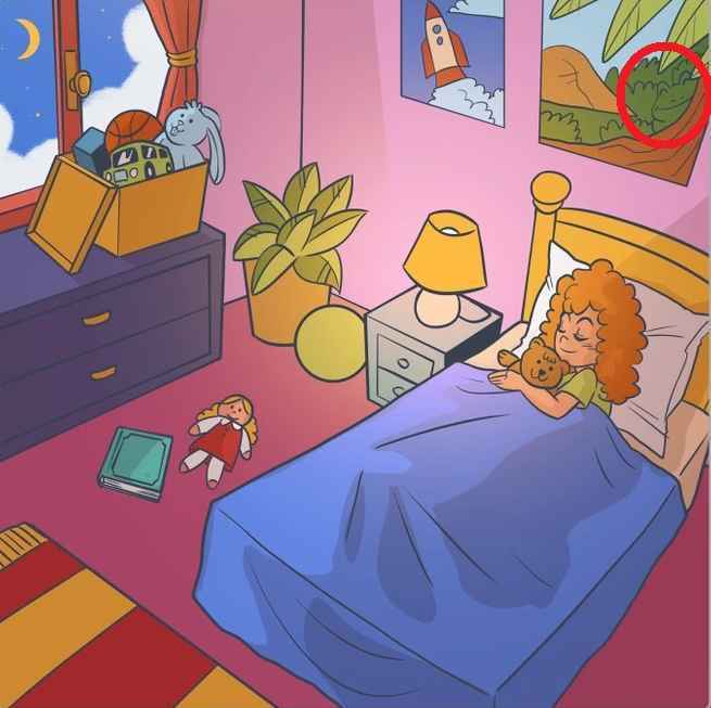 Nemohli jste najít žábu? Tady je nápověda – je na obrázku nad dívčinou postelí.