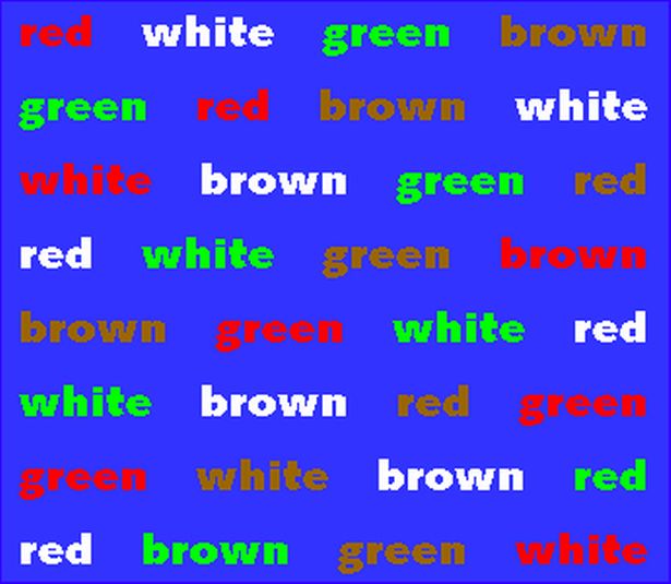 Test, známý jako Stroopův test, je popisován jako „vynikající test mozku, který prověří vaši mentální pohotovost a flexibilitu“. Používá se při neuropsychologickém hodnocení k měření mentální bdělosti a flexibility, protože k jeho dobrému provedení je zapotřebí silné pozornosti, zábran a seberegulace (nazývané také exekutivní funkce).