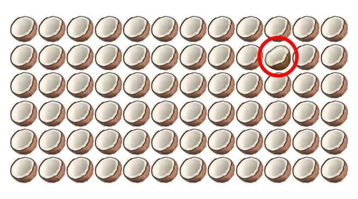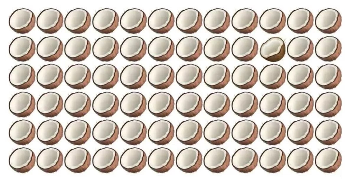 Na tomto obrázku uvidíte šest řad kokosových ořechů. Vaším úkolem je najít další jednotku do pěti sekund.