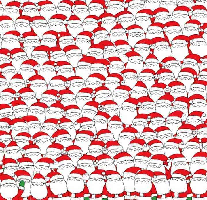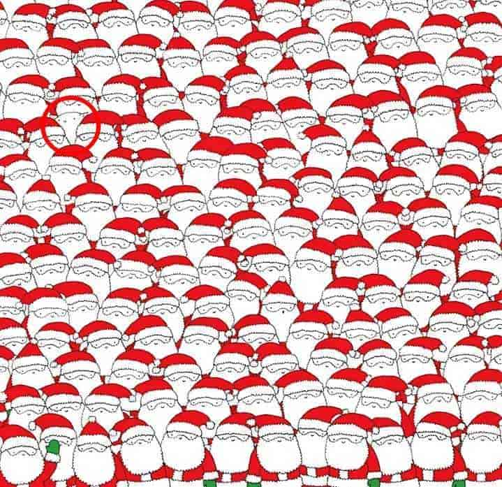 V další hádance musíte mezi Santa Clausy najít ovci, píše jagranjosh. Nebude snadné ji odhalit, protože je velmi dobře maskovaná.